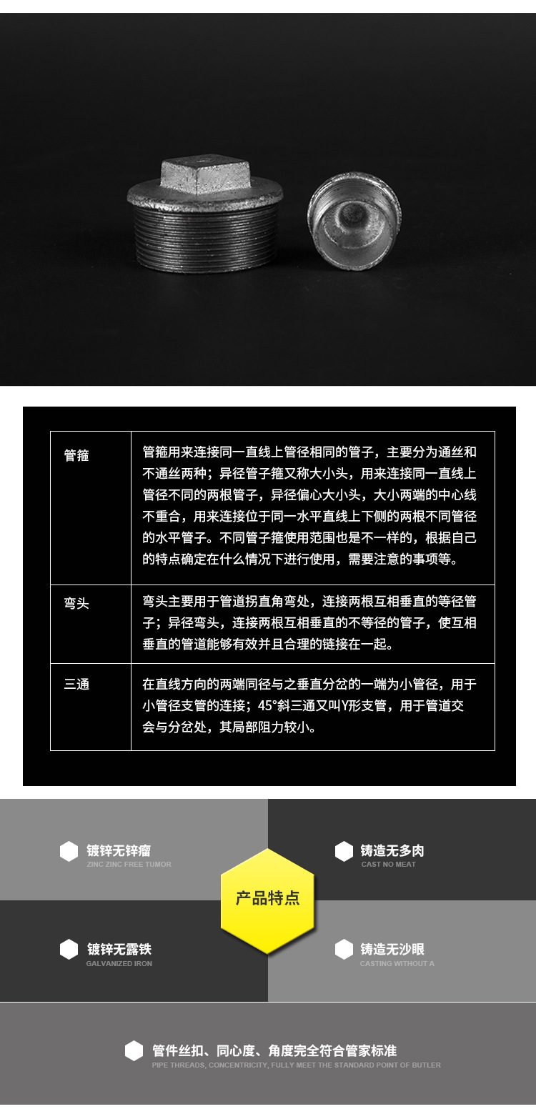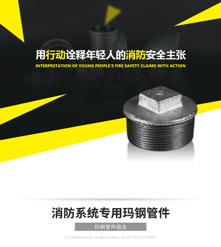 龙成 玛钢管件 无边丝堵 外丝堵头 管堵 DN50