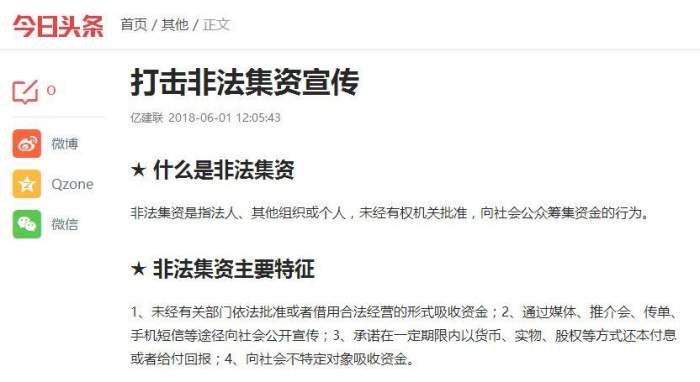 今日头条非法集资宣传