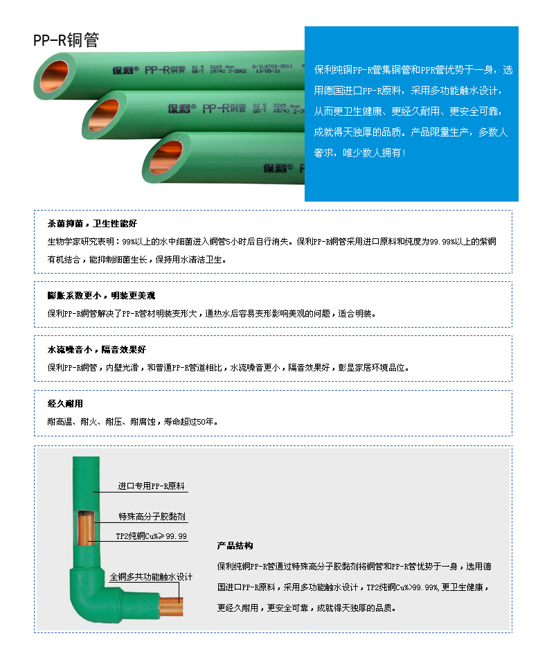 保利 保利6分ppr水管内衬紫铜管材家装高端饮用自来水管ppr热水管 3.4/20*3.4/4/20/铜管