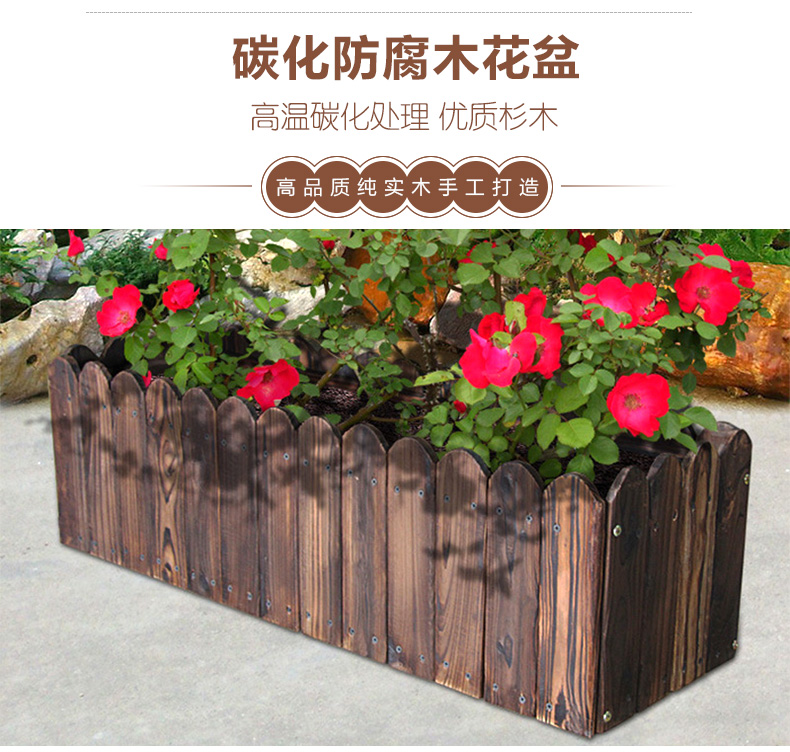 恒泰 防腐木花箱碳化实木花盆长方形阳台种菜盆景特大种植箱木质花槽桶
