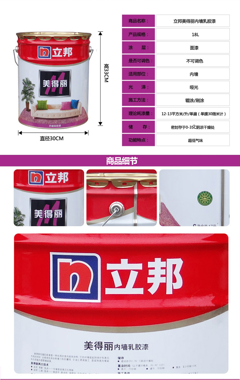 立邦 美得丽乳胶内墙漆 18L